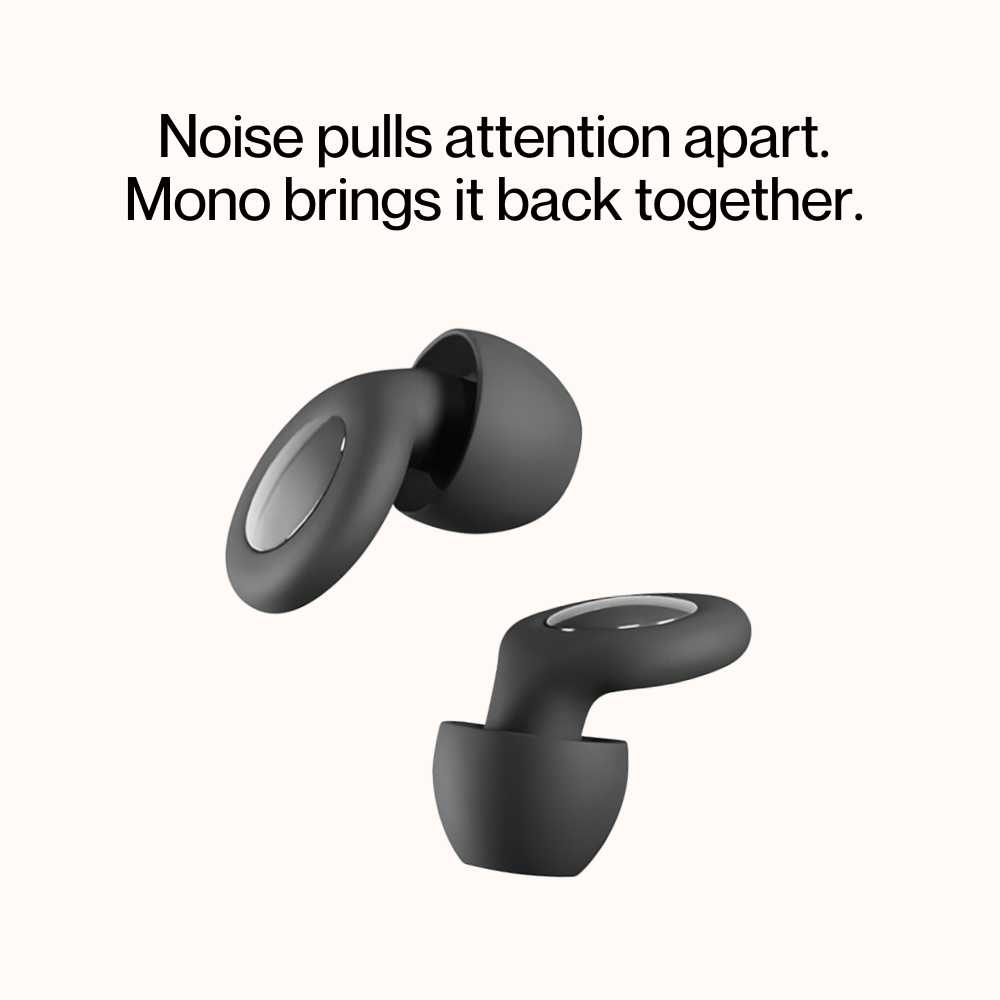 Most noise solutions weren’t designed for focus. They either block too much, demand technology, or become uncomfortable over time. Mono is built specifically to reduce distraction and protect attention in everyday environments.