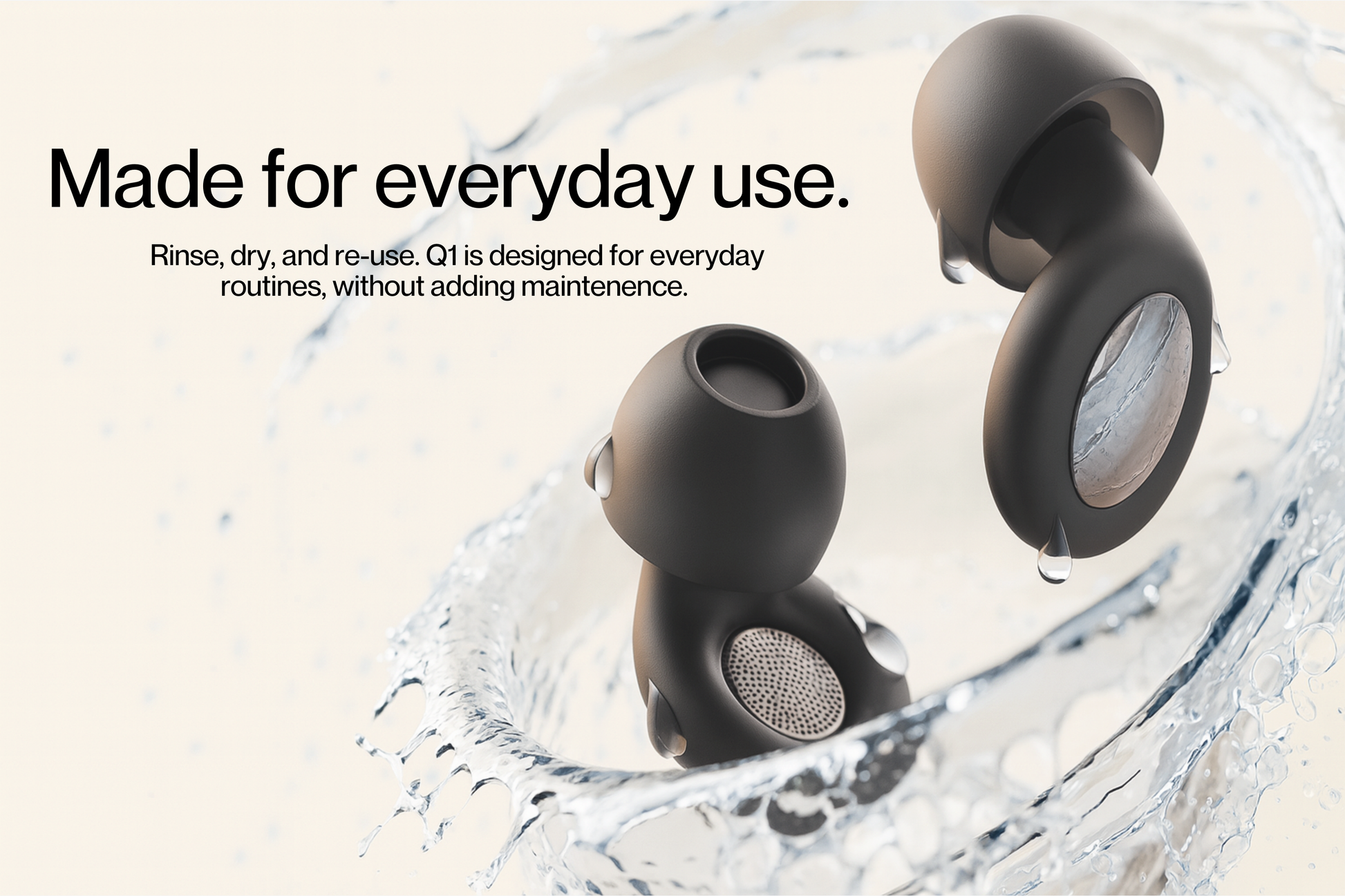 Q1 is also reusable and easy to clean. Simply rinse with water, allow to dry, and store in the case when not in use. Designed for everyday wear, Q1 is built to be used again and again.