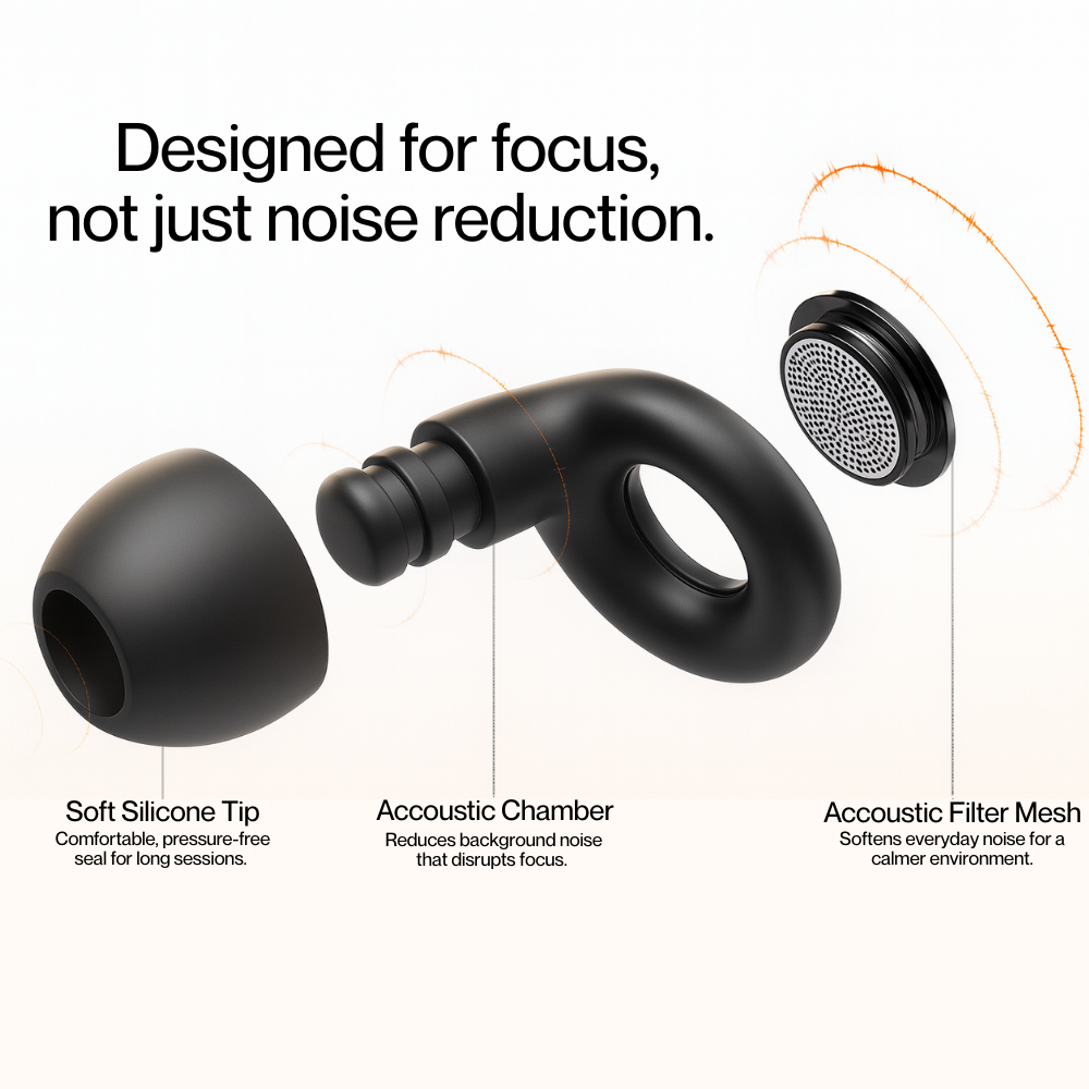 Mono Q1 is designed specifically for focus - softening distracting background noise without isolating you from your environment or requiring batteries, apps, or setup.